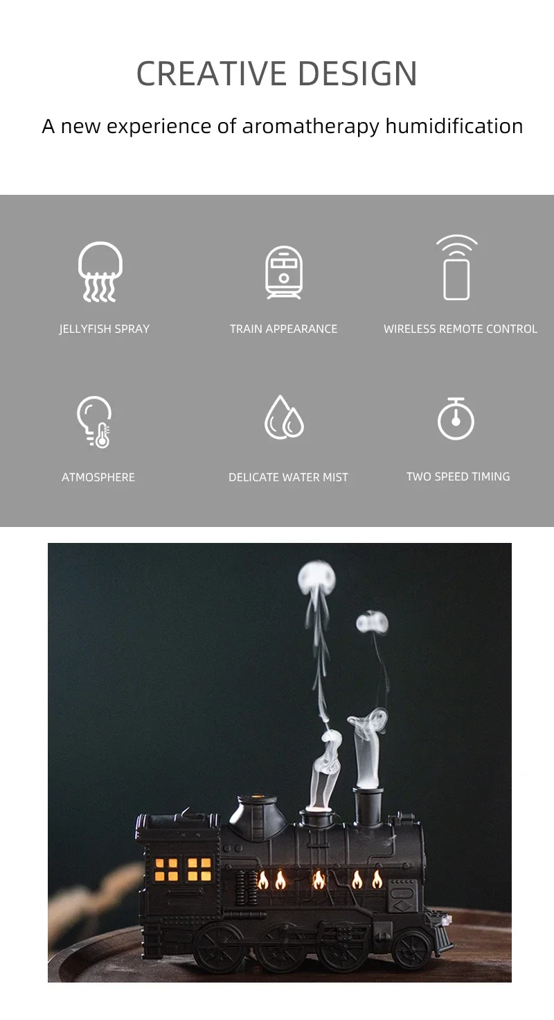Mini Train Shape Aromatherapy Essential Oil Diffuser Ultrasonic Cool Mist Air Humidifier with LED Lamp Aroma Difusor Atomizer